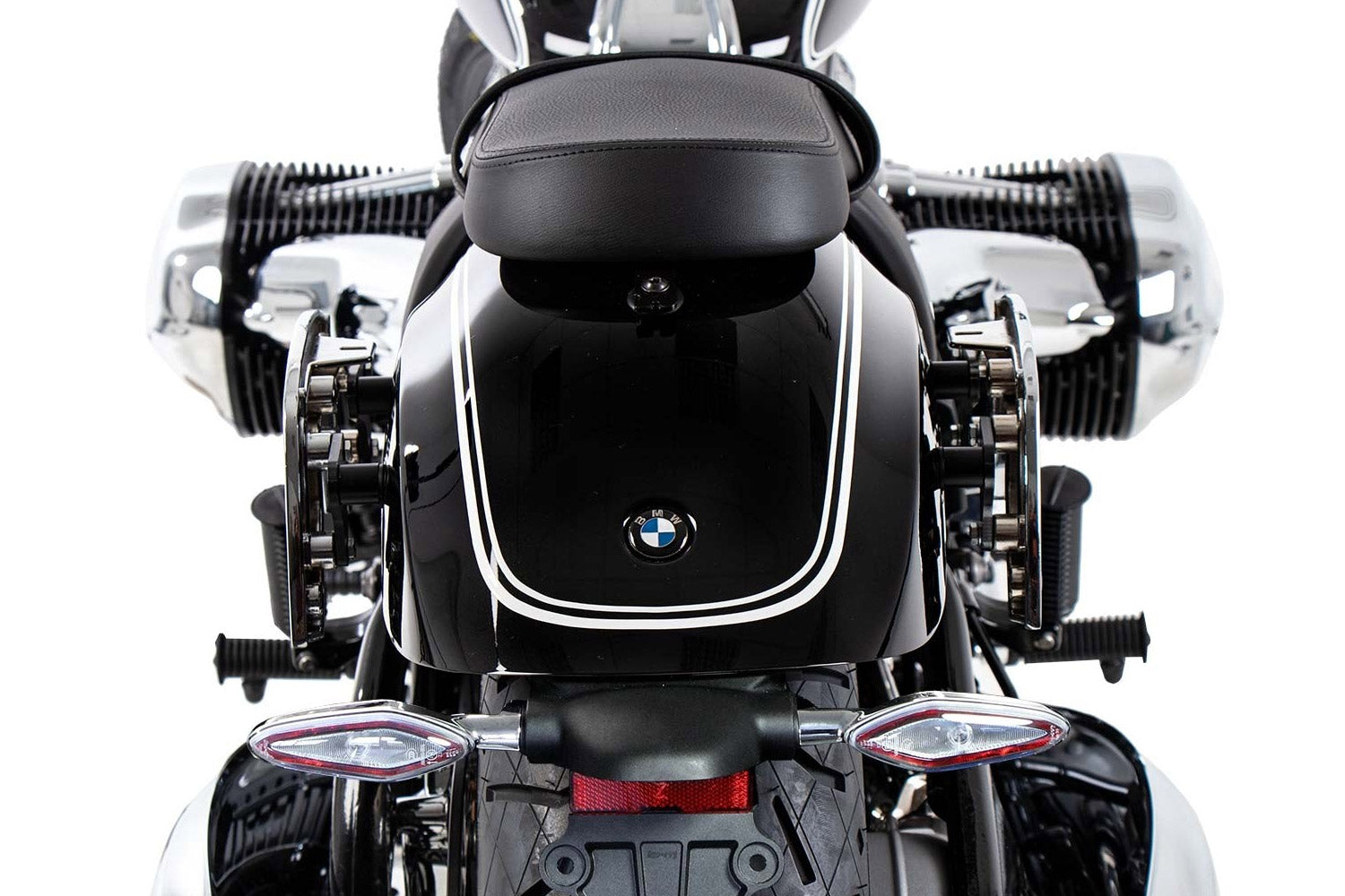 All Hepco&Becker side and leather bags or cases with C-Bow mounting can be attached to the motorcycle with the aid of this C-Bow carrier specially developed for the BMW R 18. The discreet design integrates perfectly into the overall contour of the Big Boxer. Naturally, there is sufficient safety clearance between the bags and the hot silencers. Thanks to the C-Bow technology, the matching bags attach to the C-Bow carrier quickly and easily with just one click and are firmly locked by key to protect against theft. The bags are firmly bound to the motorcycle and stay in position during loading too. The indicators normally stay in their original position.