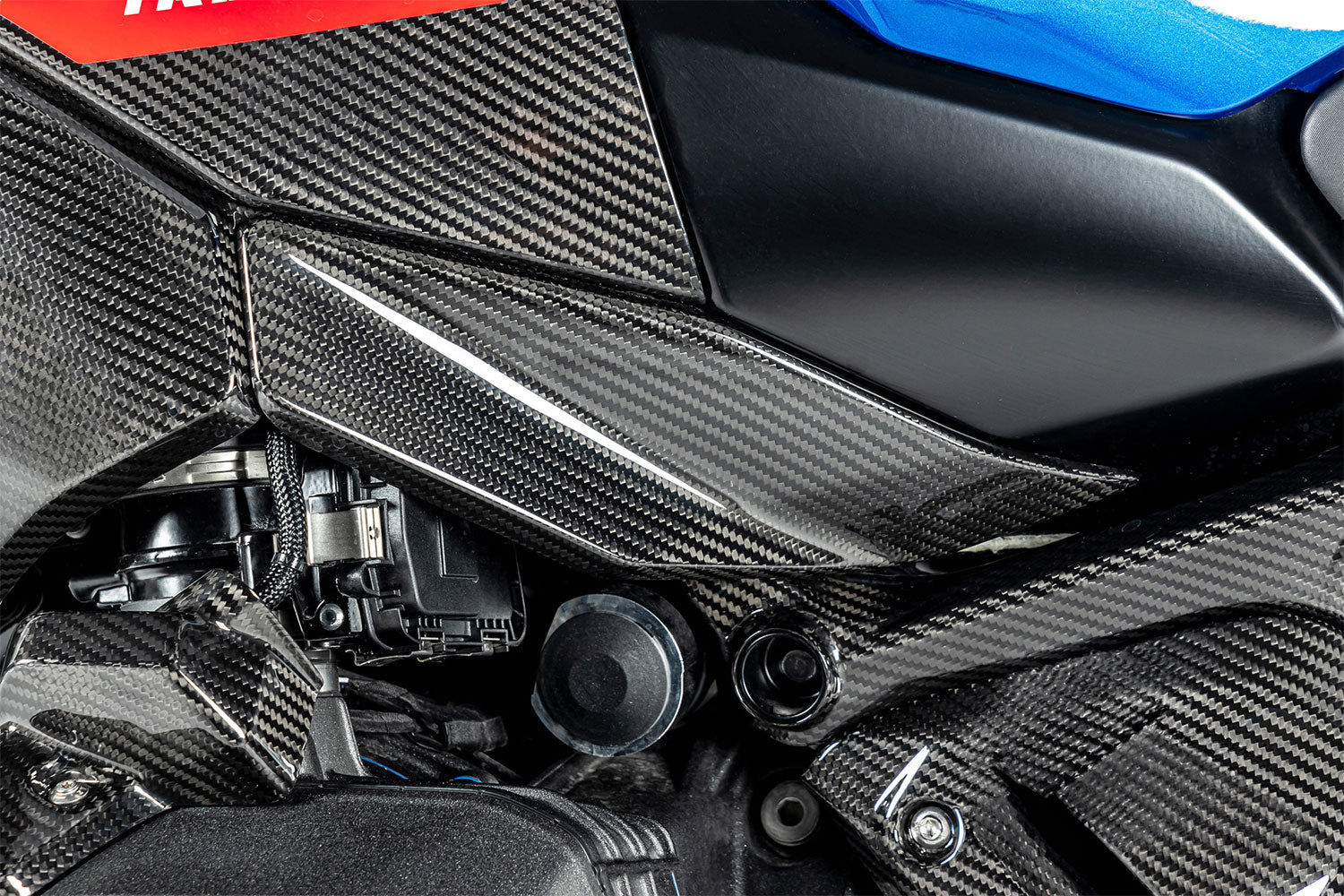 This cover forms the lower part of the two-piece side tank cover and occupies a central position on the motorcycle. Due to its highly visible location, it is a real eye-catcher and elevates the look of your BMW to a new level. The use of carbon gives the cover a light, yet elegant and high-quality appearance. Enjoy the sporty flair and luxurious look of this Ilmberger carbon lower tank cover for your BMW R 1300 GS.
