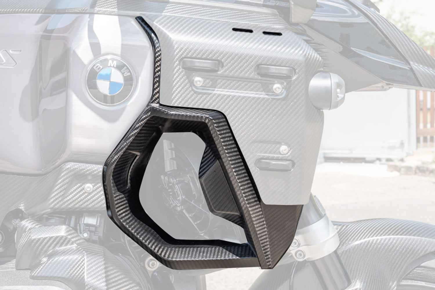 Experience the perfect combination of functionality and aesthetics with this precisely manufactured air outlet cover for the right-hand side of the BMW R 1300 GS Adventure. Made from matt carbon, this component optimises airflow and gives your motorcycle an impressive appearance.