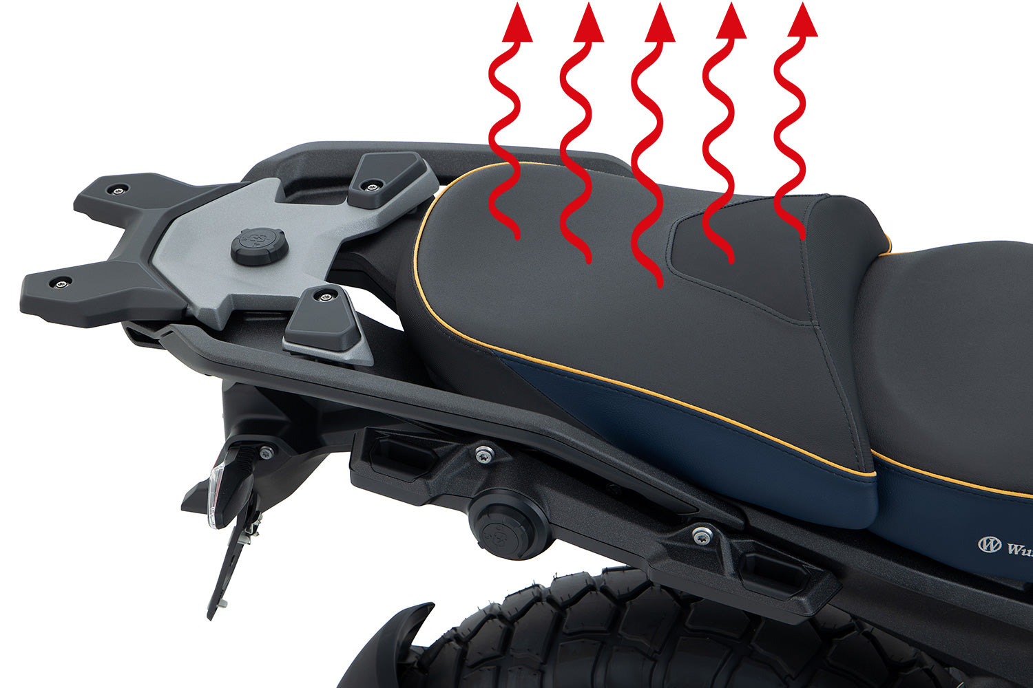 The desired heating level (Off, Heating Level 1, Heating Level 2) can be adjusted as usual using a conveniently positioned switch on the right-hand side of the seat in the direction of travel, while the rider is notified in the onboard menu when the pillion seat heating element is activated.