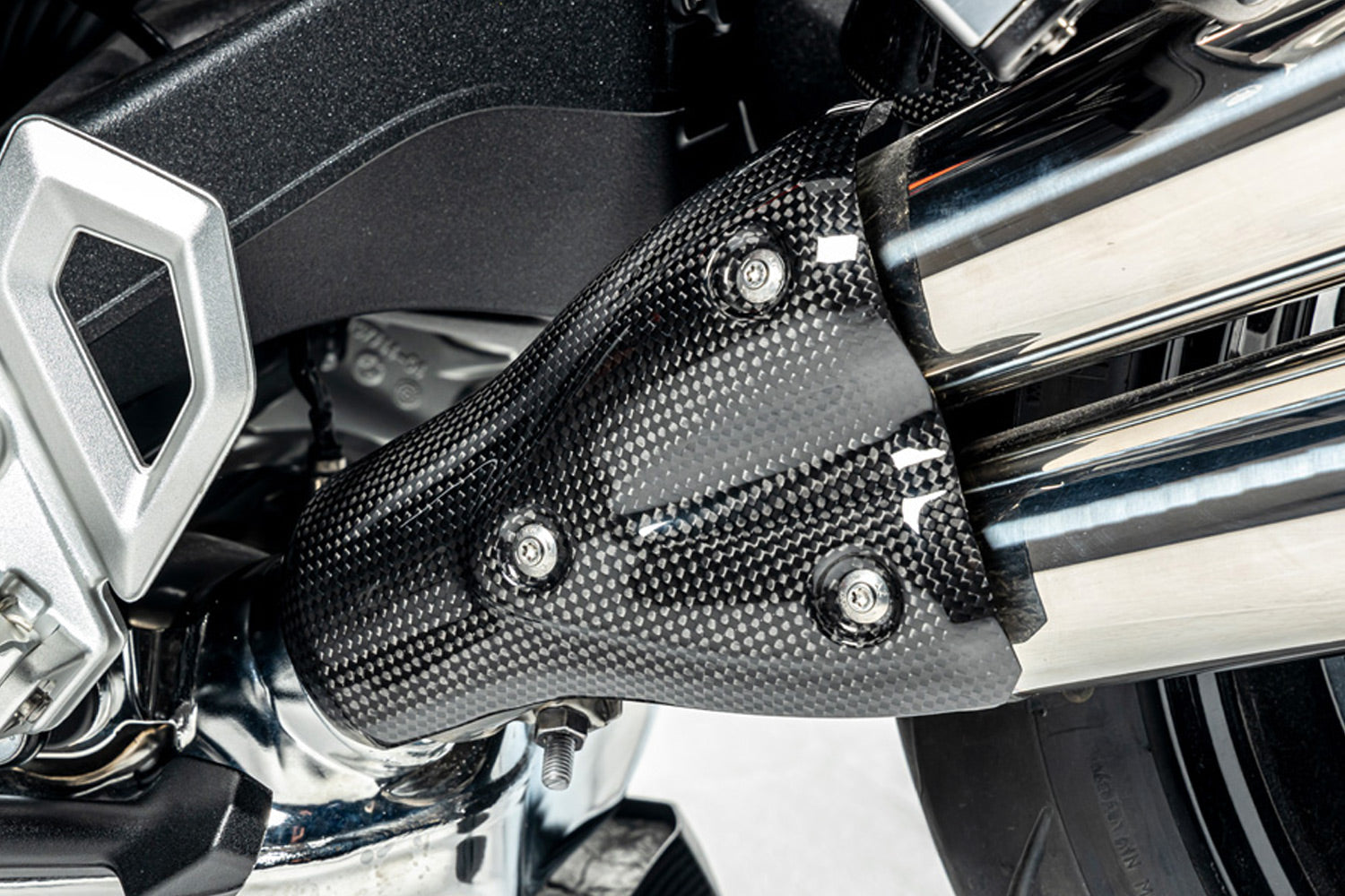 Made from high-quality carbon, it effectively protects the rider and passenger from the intense heat of the exhaust while providing a cool look. The lightweight design helps reduce the overall weight of the motorcycle without compromising durability.