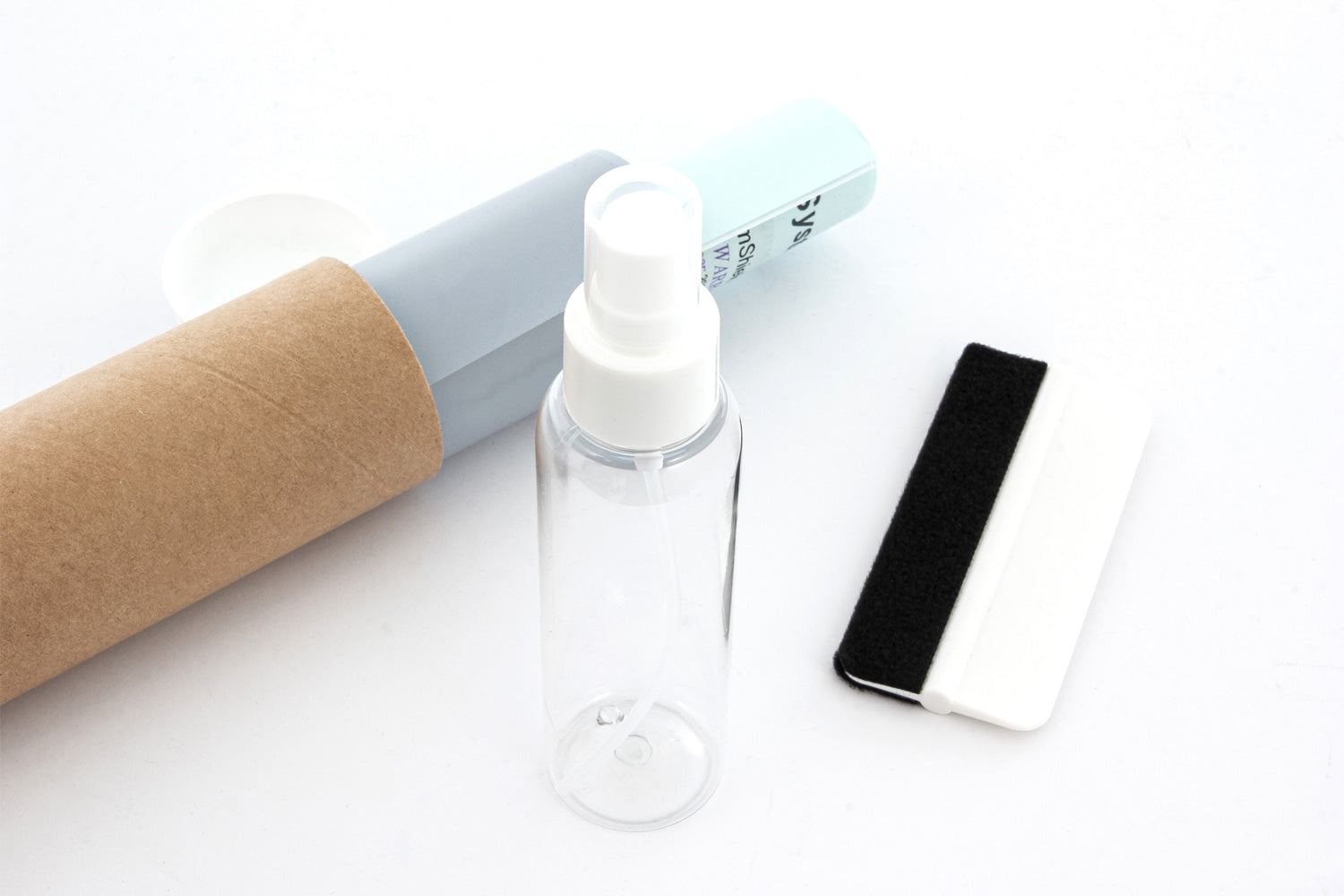 - The set includes spray bottle, squeegee and installation instructions
