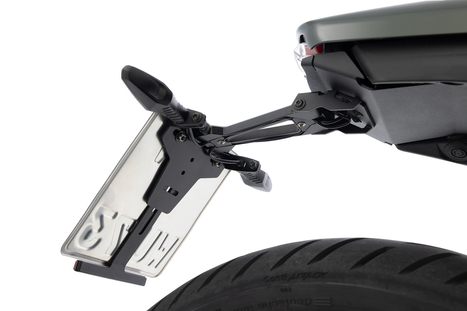 Two additional styling options are available for customising the number plate mounting for the PURE STRAIGHT rear conversion: